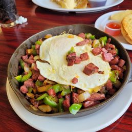 A great place for breakfast. 30 min wait on a Saturday morning so we looked over the menu. They have a ton of breakfast and lunch items available. We started with a bowl of clam chowder. Lots of clams and oh so good. My corned beef hash skillet was the best I've ever had. The corned beef hash was tasty and not greasy, the potatoes crisp and flavored just right and perfect over easy eggs. Made is easy to mix it all together, which is how I like it. Wife had the cinnamon french toast so light and airy. Cash (or Venmo) only. Super nice servers. If I lived closer would be here every morning.